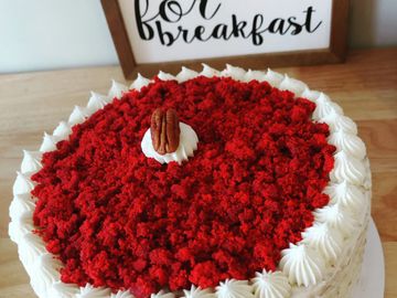 Moist red velvet cake with silky homemade cream cheese icing.