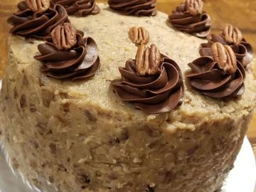 German chocolate cake with made from scratch coconut pecan icing.