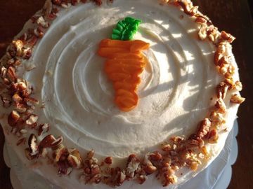 Moist carrot cake, with silky homemade cream cheese icing, topped with/ or without pecans.