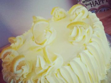 Moist lemon cake with lemon buttercream.